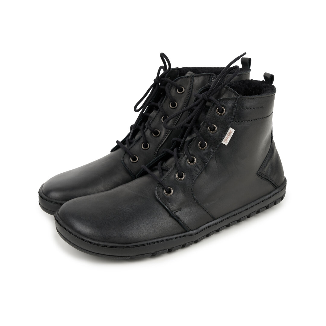 Dámské barefoot kožené boty Devon s tmavou ovčí vlnou černá