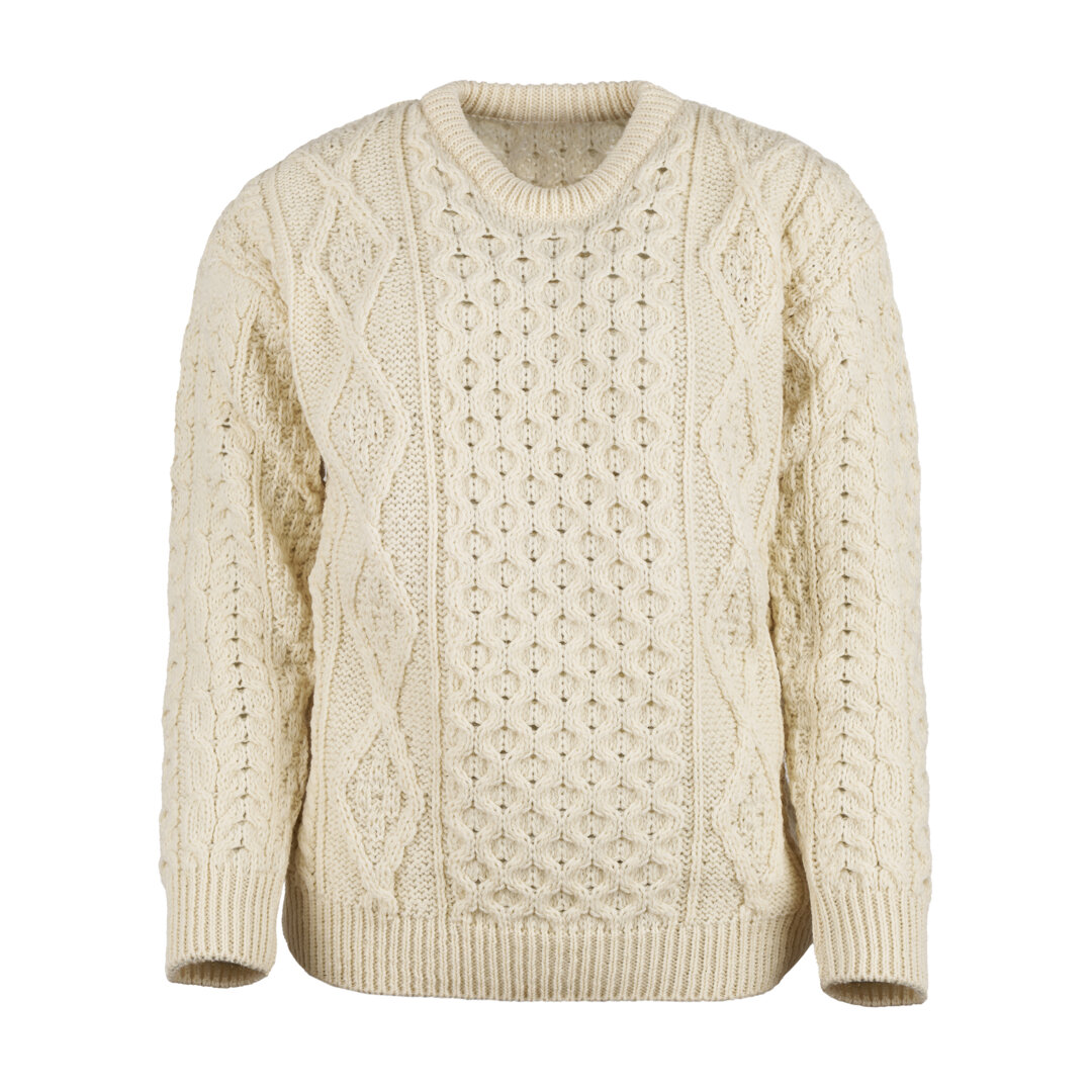 Hřejivý svetr z ovčí vlny se stane nepostradatelnou součástí vašeho šatníku. Zamilujte se do huňatého objetí přírodní ovčí vlny. Kulatý výstřih a tradiční pletený vzor vytváří z tohoto svetru ikonický a nadčasový kousek.