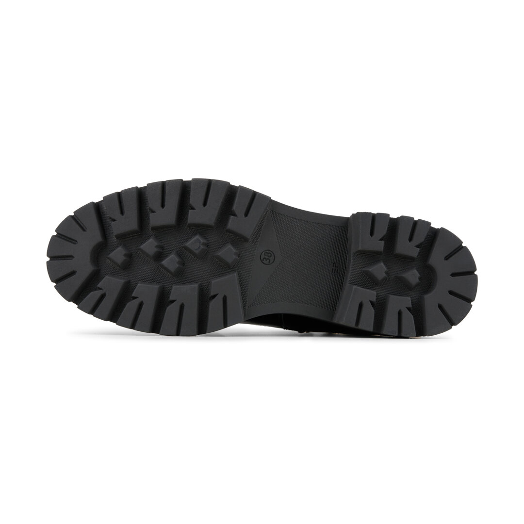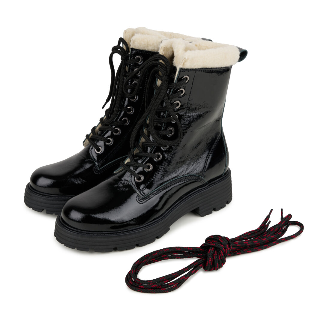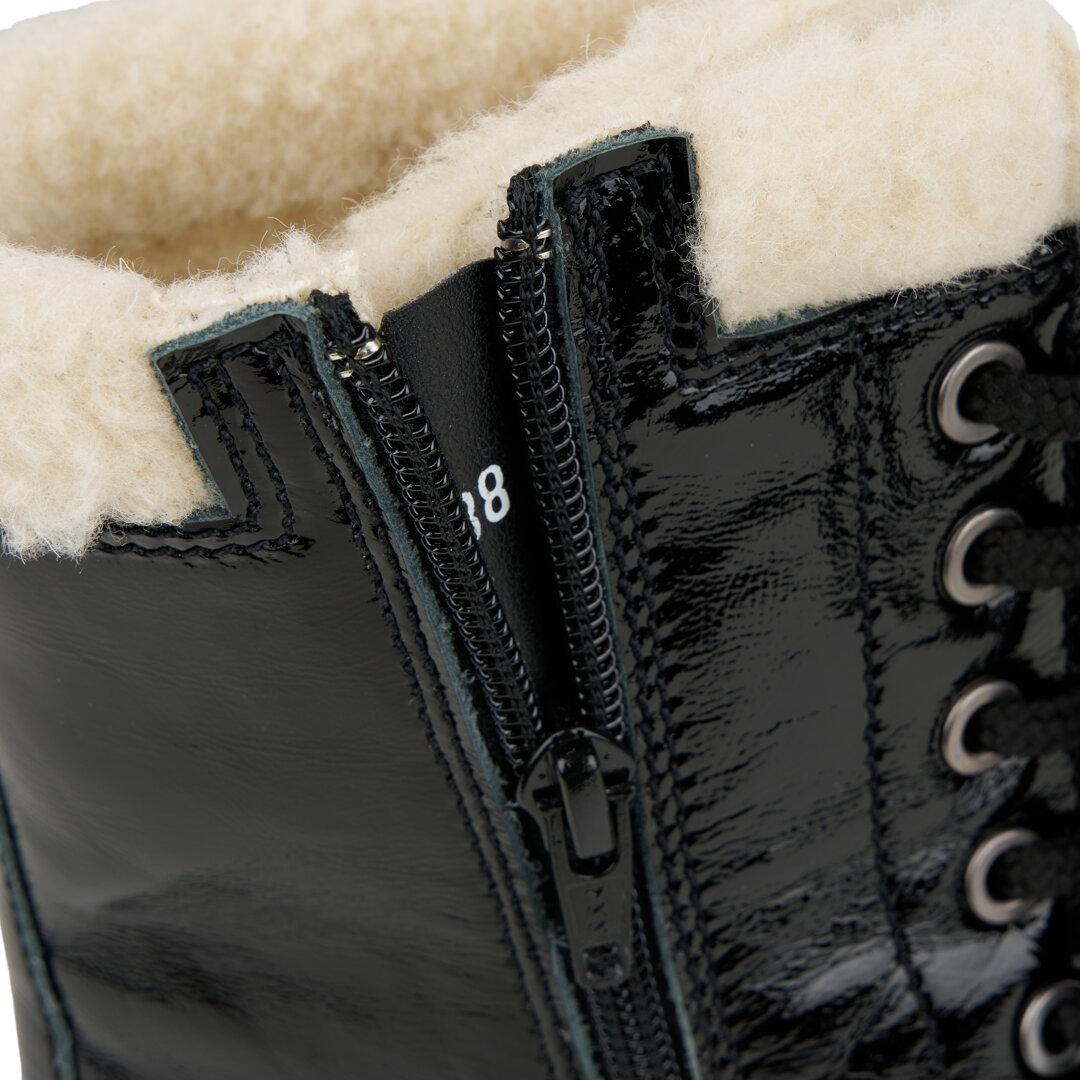 Naše oblíbené huňaté farmářky v novém kabátku. Stylové, minimalistické, jedinečné... Černá obuv s lesklým finišem je doplněná o dvoje různé tkaničky - farmářky si tak můžete doladit dle svého gusta.
