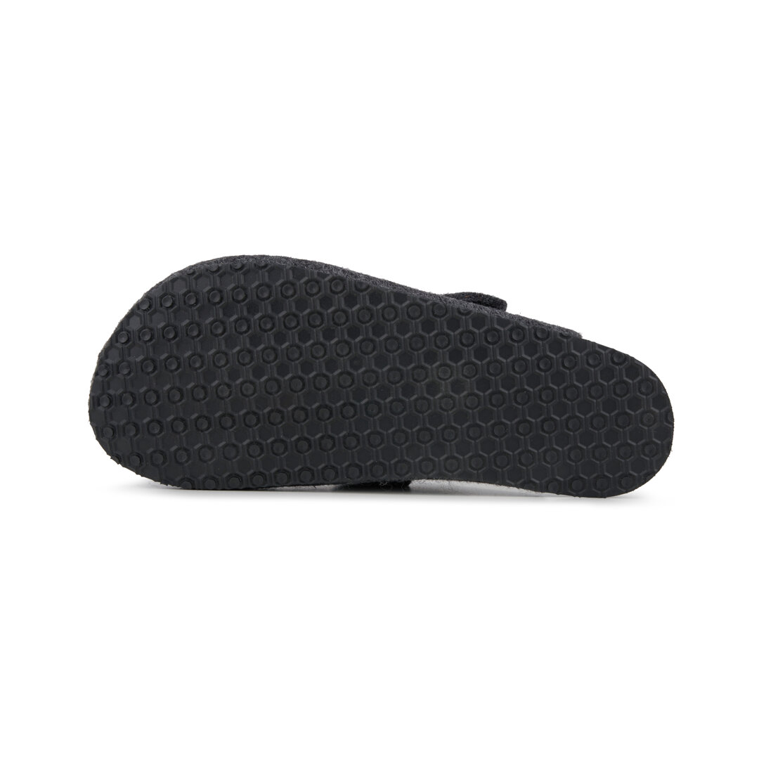 Barefoot pantofle z vlněného filcu jsou opatřeny nastavitelným páskem na nártu. S barefoot obuví je návrat k přirozené chůzi snadný.