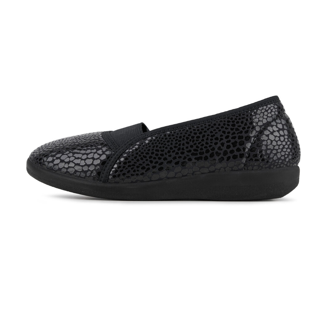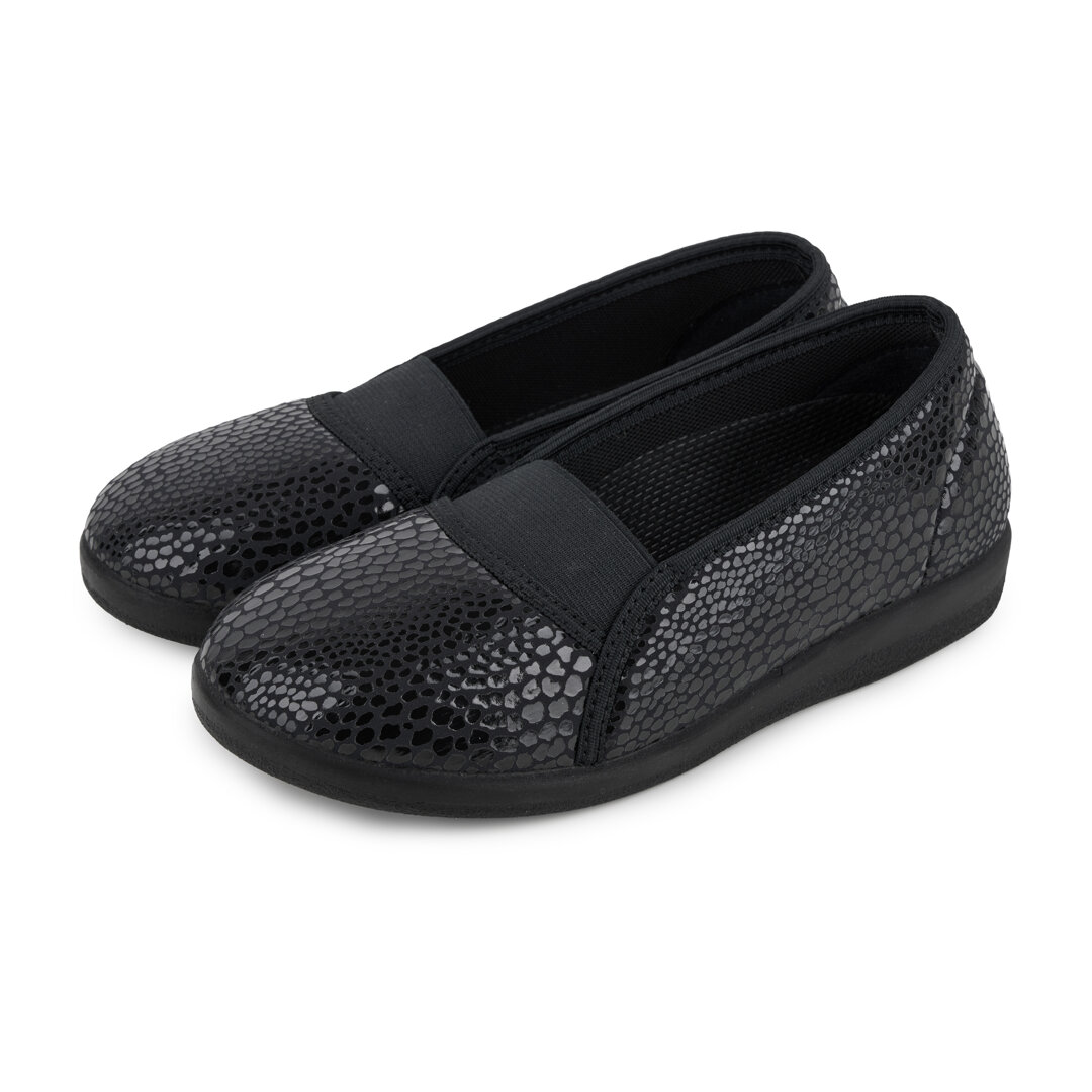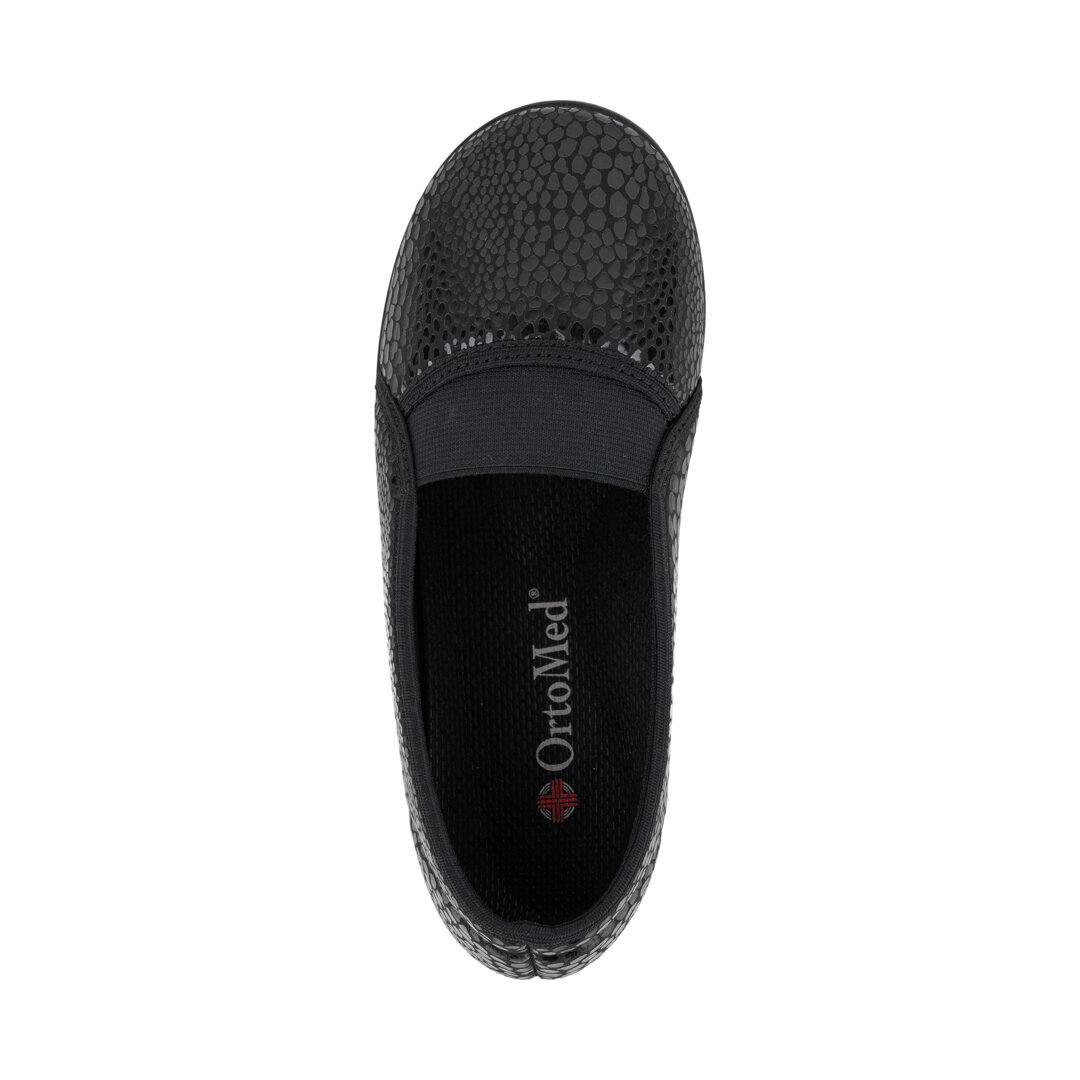 Dámské komfortní baleríny spojují moderní vzhled se zdravým obouváním. Lehký textilní svršek dýchá i v horkých dnech, speciální stélka OrtoMed zajišťuje měkký došlap a tlumí nárazy. Díky pružné gumě na nártu se snadno obouvají a širší střih H poskytuje pohodlí i ženám se širším chodidlem.