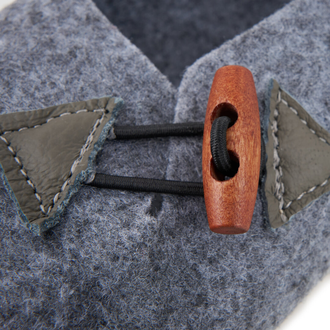 Filcové bačkory jsou nazouvací, a proto poskytnou snadné a rychlé obouvání. Díky širokému střihu poskytnou dostatek prostoru pro chodidlo, a tak nikde nedřou ani netlačí. Díky gumičce v oblasti nártu se bačkory snadno obouvají. Dřevěná ozdoba zároveň slouží jako dekorační prvek.