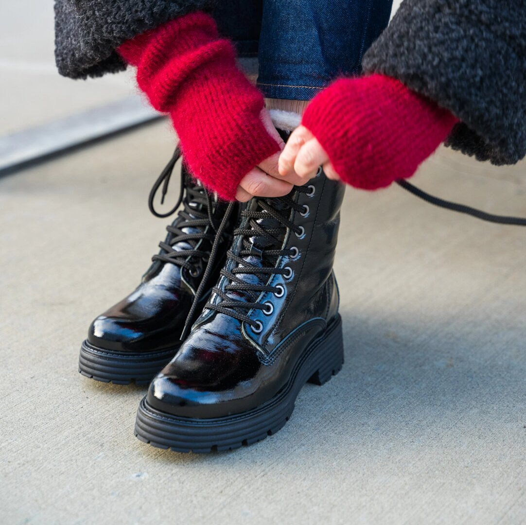 Naše oblíbené huňaté farmářky v novém kabátku. Stylové, minimalistické, jedinečné... Černá obuv s lesklým finišem je doplněná o dvoje různé tkaničky - farmářky si tak můžete doladit dle svého gusta.