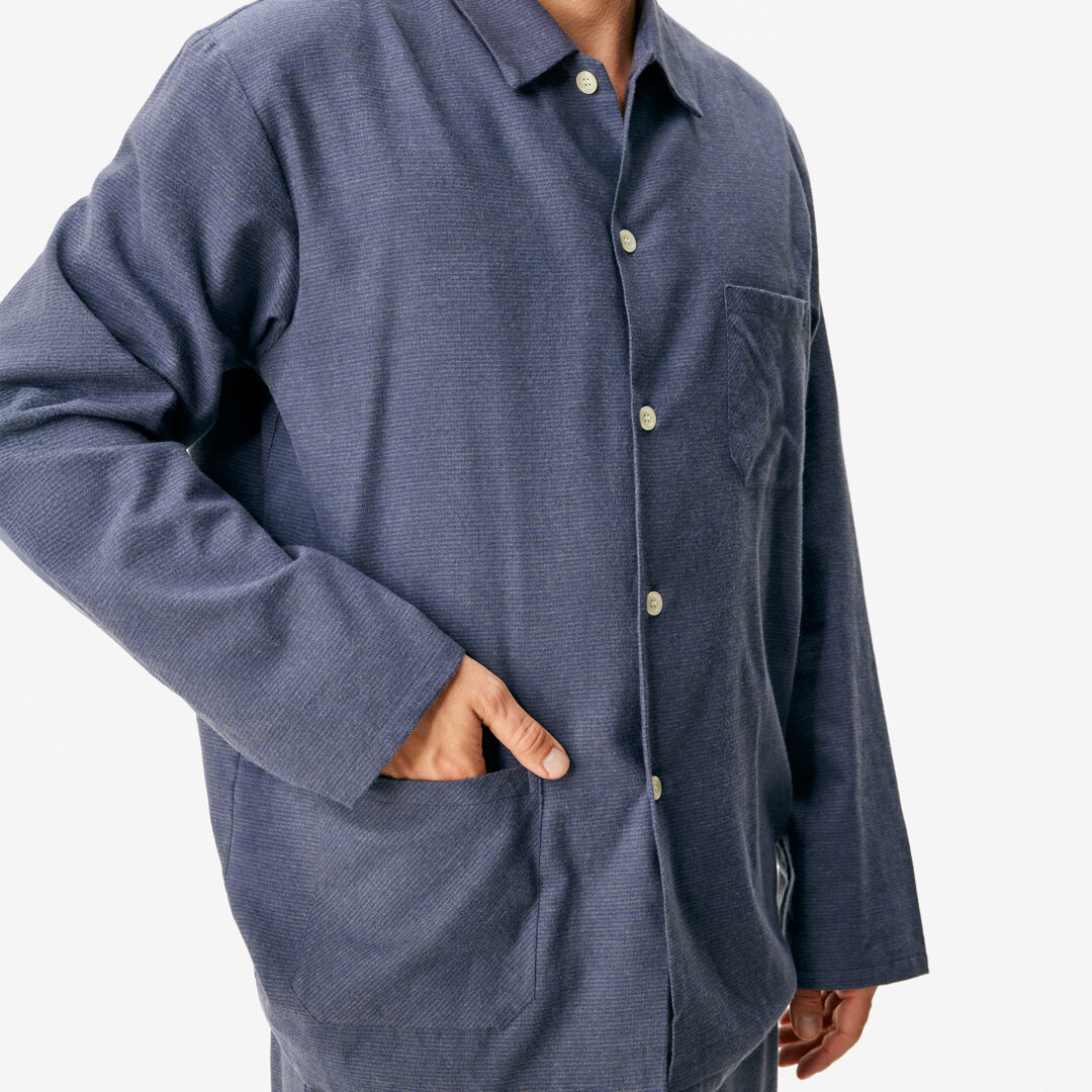 Vychutnejte si chladné noci v maximálním pohodlí díky tomuto stylovému pánskému pyžamu. Dokonalé spojení bavlny a ovčí vlny Merino poskytne hřejivé objetí.